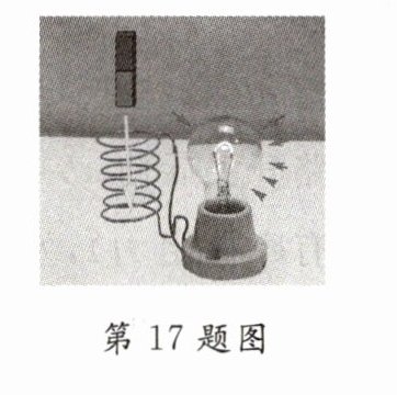 17. [2024·安庆三模]将一个铜质线圈与一只小灯泡连接形成一个闭合回路,当将一条形磁体插入或拔出线圈时,会观察到灯泡发光,如图所示,下列有关说法正确的是 ( )