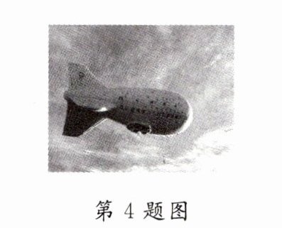4. [2024·盐城]如图所示是我国自主研发的“极目一号”Ⅲ型浮空艇,外形像大白鲸,整体呈流线型,尾部有三个尾翼. 其内部有两个气囊,一个气囊装有密度比空气小的氦气,另一个气囊内充有空气,艇体通过排放空气实现上升. 艇体用特种缆绳与地面相连,缆绳中布置细电缆和光纤. 下列关于浮空艇分析错误的是 ( )