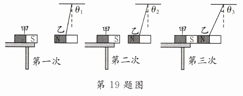 19. [海南中考]小谦在探究“磁体间相互作用规律”时发现:磁体间的距离不同,作用力大小也不同. 他想:磁体间作用力的大小与磁极间的距离有什么关系呢?