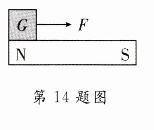 14. [2024·福建二模]如图所示,重为G的小铁块在水平方向拉力F的作用下,沿条形磁铁的表面从N极匀速滑到S极的过程中,下列说法正确的是 ( )