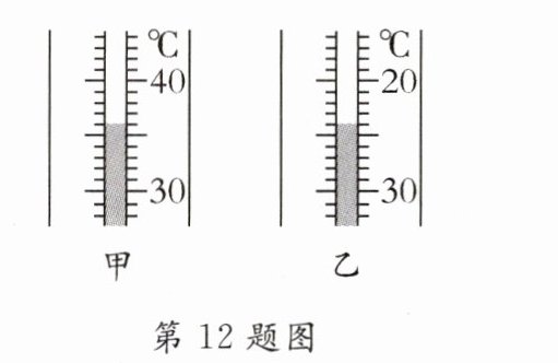 12. 图甲中温度计的示数是_______$^{\circ}C$,图乙中温度计的示数是_______$^{\circ}C$.