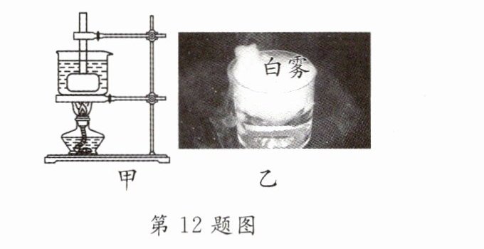 12. 在探究物态变化的实验中,密封的锤形玻璃泡内有少量碘颗粒,将玻璃泡浸没在开水里如图甲所示,观察到玻璃泡内固态碘逐渐消失,变成紫色的碘蒸气并充满玻璃泡.