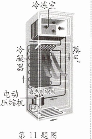 11. [2023·芝罘区期末](多选)常用的电冰箱利用了一种叫做 R600 的冰箱制冷剂作为热的“搬运工”,把冰箱里的“热”“搬运”到冰箱外面. 如图所示的冰箱,在使用中包含多种物态变化,下列说法正确的是 ( )