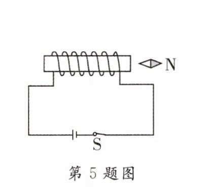 5. [2024·成都]如图所示是小李同学探究“通电螺线管的磁场方向”的实验示意图. 闭合开关,小磁针静止时 N 极的指向如图所示. 下列说法正确的是 ( )