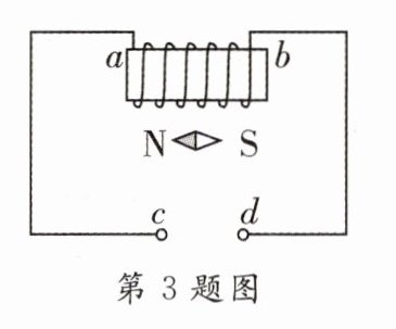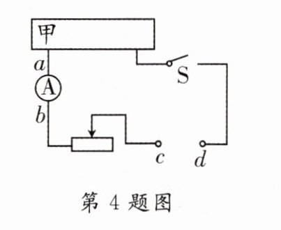 4. [2024·江西模拟]如图所示,a、b 分别为电流表两接线柱,c、d 分别为电源两极. 闭合开关后,小磁针静止时 N 极指向通电螺线管甲端,则以下判断正确的是 ( )