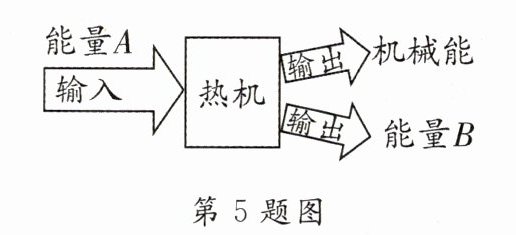 5. [2024·广州二模]某热机的能量流向图如图所示(箭头粗细不代表能量多少),已知其工作效率为80%,输出机械能为400 J,以下说法中正确的是 ( )