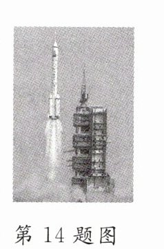 14. [2023·抚顺]2023年5月30日,如图所示是搭载神舟十六号载人飞船的长征二号运载火箭点火发射时的情景. 火箭在加速上升过程中,燃料燃烧释放的内能转化为火箭的________能,所搭载的载人飞船的质量________(填“变大”“不变”或“变小”). 神舟十六号载人飞船与核心舱通过________(填“超声波”或“电磁波”)进行联系,自主完成对接.