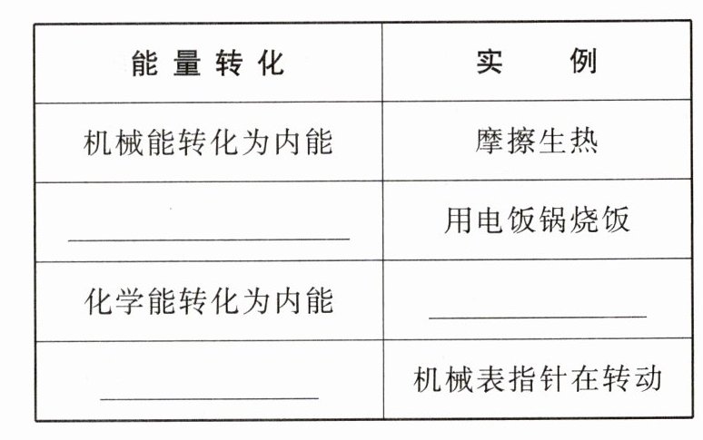 17. 各种形式的能之间可以相互转化,请按表中的示例完成表格: