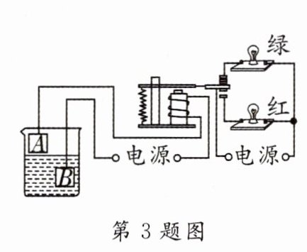 3. [2023·天津]党的二十大报告指出“科技是第一生产力”. 某学校为了培养学生的科学素养,组织科技创新大赛,小明在比赛中制作了水位自动报警器,原理图如图所示. 当水位达到金属块 A 时(一般的水都能导电),则( )