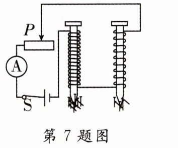 7. [2024·嘉祥开学]小可在用如图所示的装置探究线圈匝数对电磁铁磁性强弱的影响时,将两个匝数不同的电磁铁串联接入电路,其好处是______________________. 利用此实验电路也能研究电流大小对电磁铁磁性强弱的影响,接下来的操作应该是______________________.