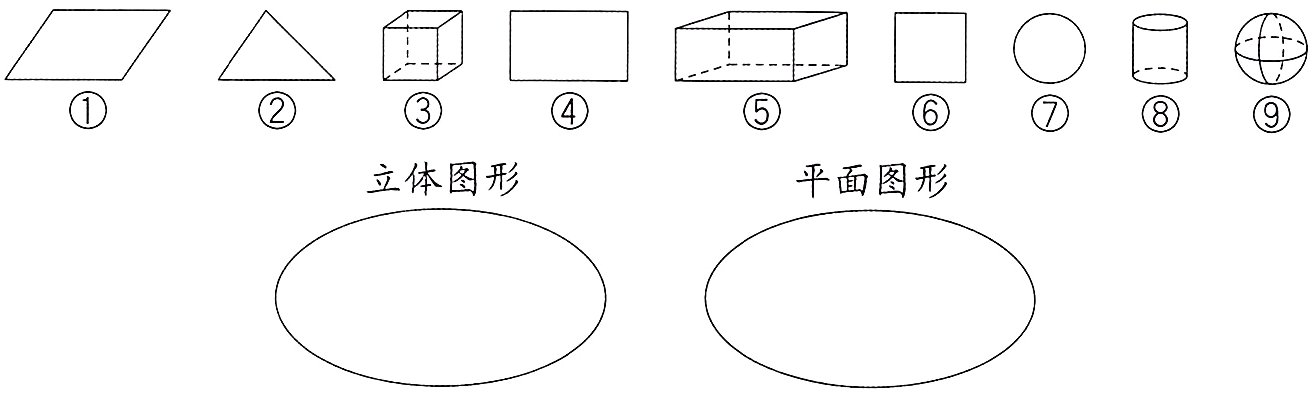 按要求将下面的图形分类,把序号填入相应的圈里。
