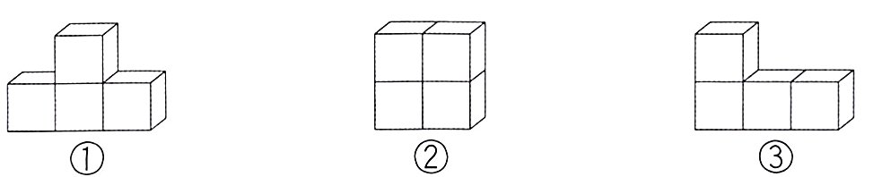 用4个相同的正方体搭一个立体图形,从正面看到4个正方形,从上面看到2个正方形,从右面看到2个正方形。搭成的立体图形是( )。(填序号)