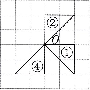 (3)最后1片叶子是图②绕点$O$按逆时针方向旋转$90^{\circ}$得到的,请在图上画出最后1片叶子。