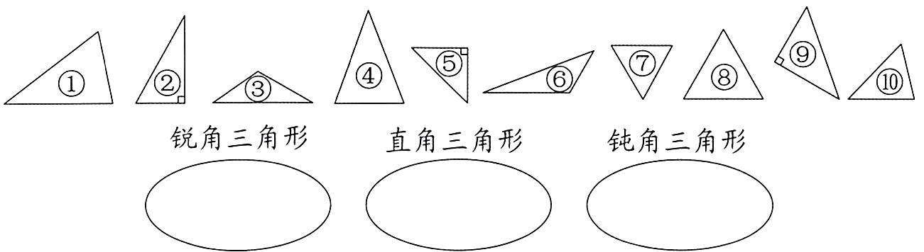 给下面的三角形分类,把序号分别写在相应的圈里。