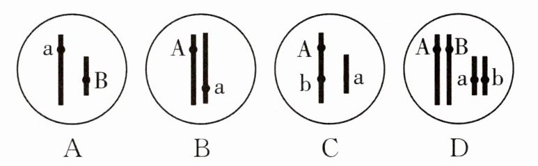 7. 某生物体细胞中的两对基因Aa和Bb,分别位于两对染色体上,如图所示。下列四幅图中,能正确表示该生物的生殖细胞的是 ( )