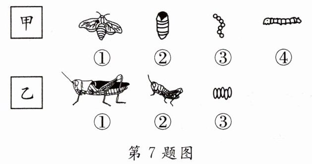 C.图乙中昆虫的发育过程为不完全变态发育