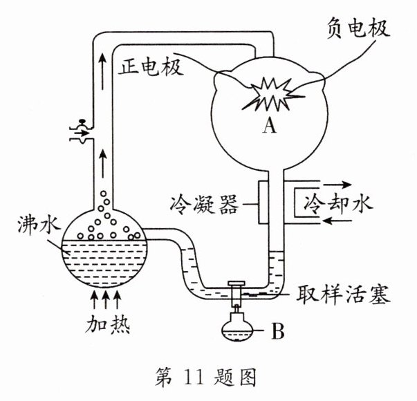 11. 如图是某位美国学者探索生命起源的实验装置,请识图回答下列问题。