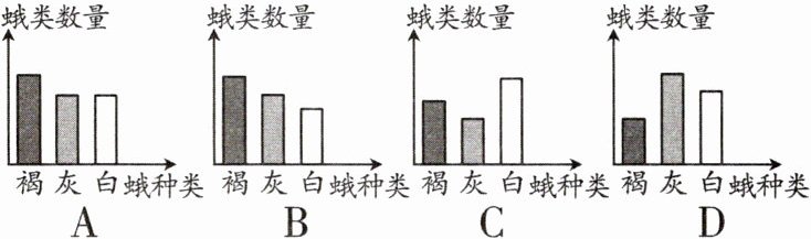 (5)若由于真菌感染而使这片森林中所有树干的颜色都变成了灰白色。多年以后,此森林中不同颜色的蛾类最可能的变化结果是图中的________。
