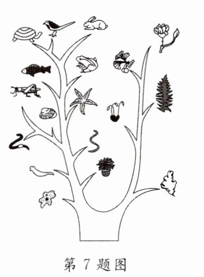 7. 如图所示的是生物进化的大致历程(进化树),请根据图回答下列问题。