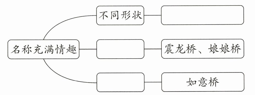 2.【新考法 完成思维导图】第3自然段围绕“家乡石桥的名称也美极了”写了哪些方面的内容?简要概括,完成下面的思维导图。(3分)