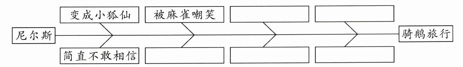 2. 男孩尼尔斯“变成小狐仙”之后到“骑鹅离家”的过程,一路心情跌宕起伏,请你将他的心理变化过程补充完整。(2.5分)