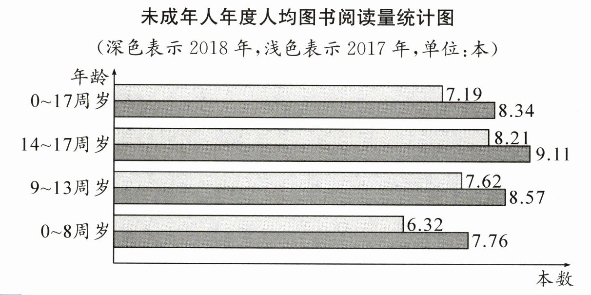 3. 跨学科 统计表 请根据未成年人年度人均图书阅读量统计图填写未成年人年度人均图书阅读量统计表。(4分)