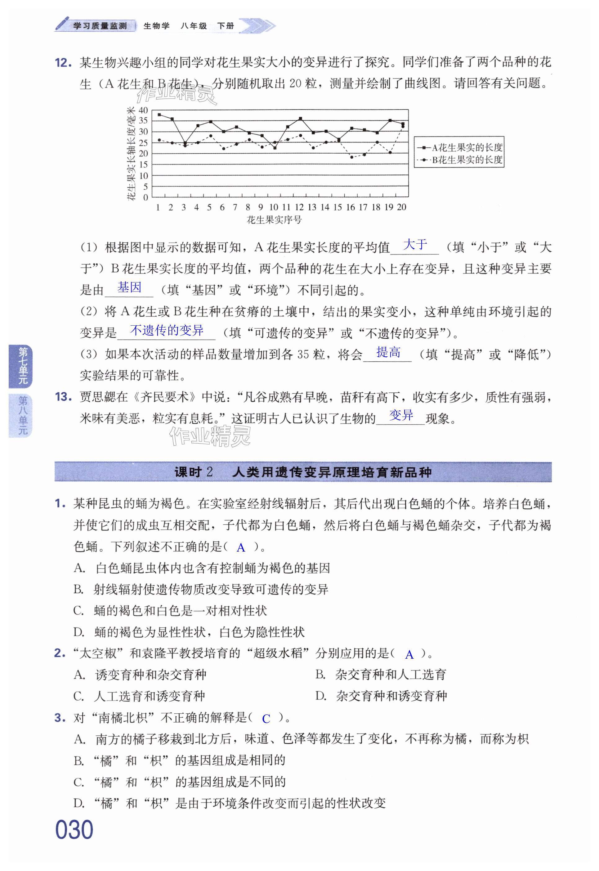 注:目前有些书本章节名称可能整理的还不是很完善,但都是按照顺序排列的,请同学们按照顺序仔细查找。练习册 2025年学习质量监测八年级生物下册人教版 答案主要是用来给同学们做完题方便对答案用的,请勿直接抄袭。