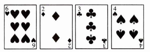 1. 下面4张扑克牌上的数,经过怎样的运算才能得到24呢?