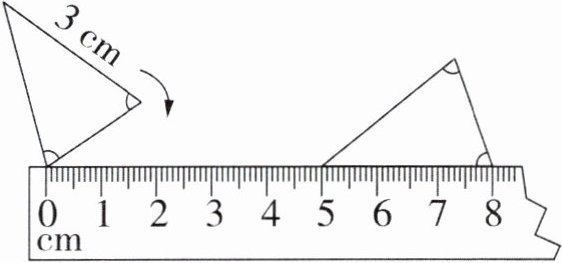 3. 如图,有一个等腰三角形平放在桌面上,将它的三条边紧贴在直尺边沿,从 0 刻度开始转一圈,则底边长( )cm。