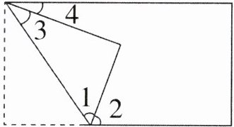 4. 如图,将一张长方形纸片折起一个角,已知$\angle2 = 70^{\circ}$,你能求出$\angle1$和$\angle4$的度数是多少吗?