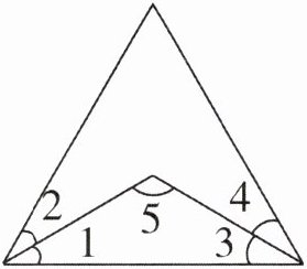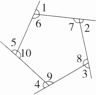 所以∠1 + ∠2 + ∠3 + ∠4 + ∠5 = (180° - ∠6) + … + (180° - ∠10) = 5×180° - (∠6 + ∠7 + ∠8 + ∠9 + ∠10) = 360°。
