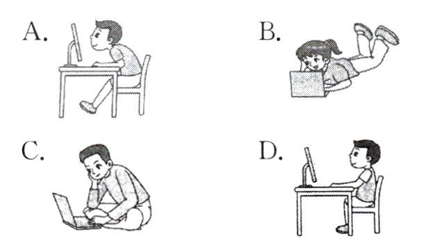 ◆Sit up straight about an arm's length(长度)away from the screen. Make sure you're looking down at your screen. Stand up and exercise often to avoid neck and shoulder pains.