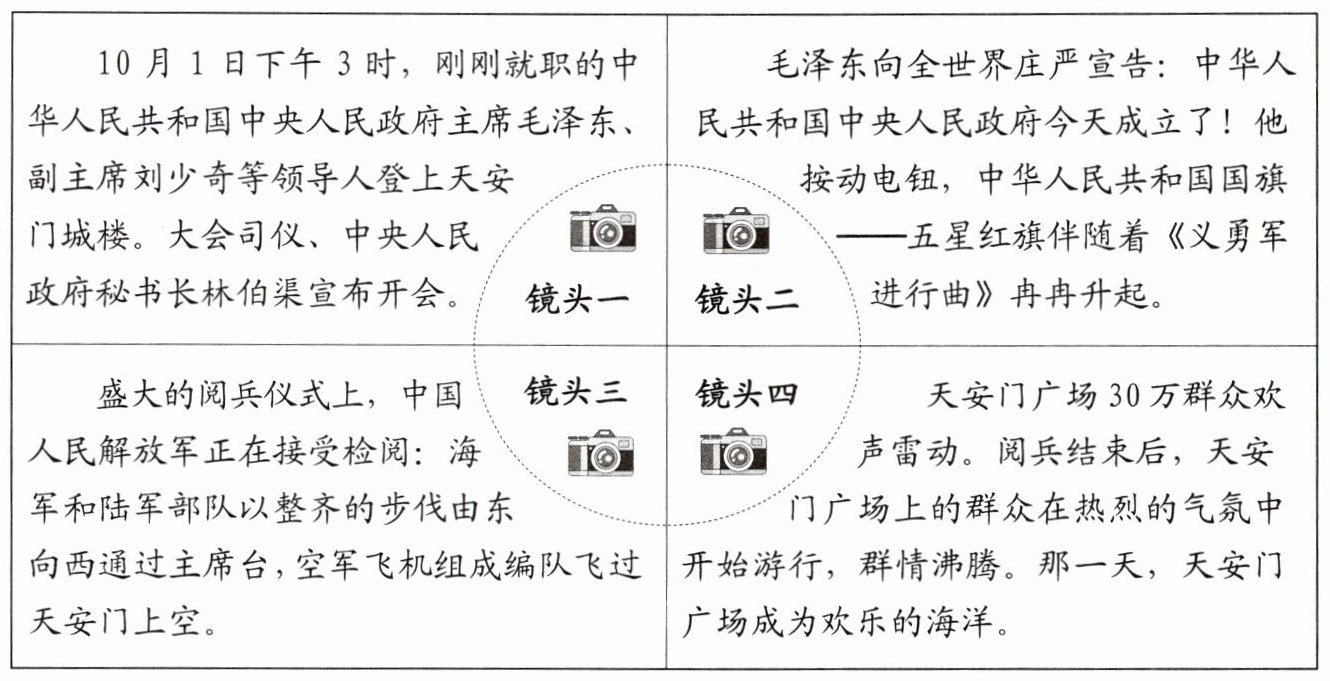 13. 1949年的开国大典留下了许多珍贵的镜头。阅读材料,回答问题。