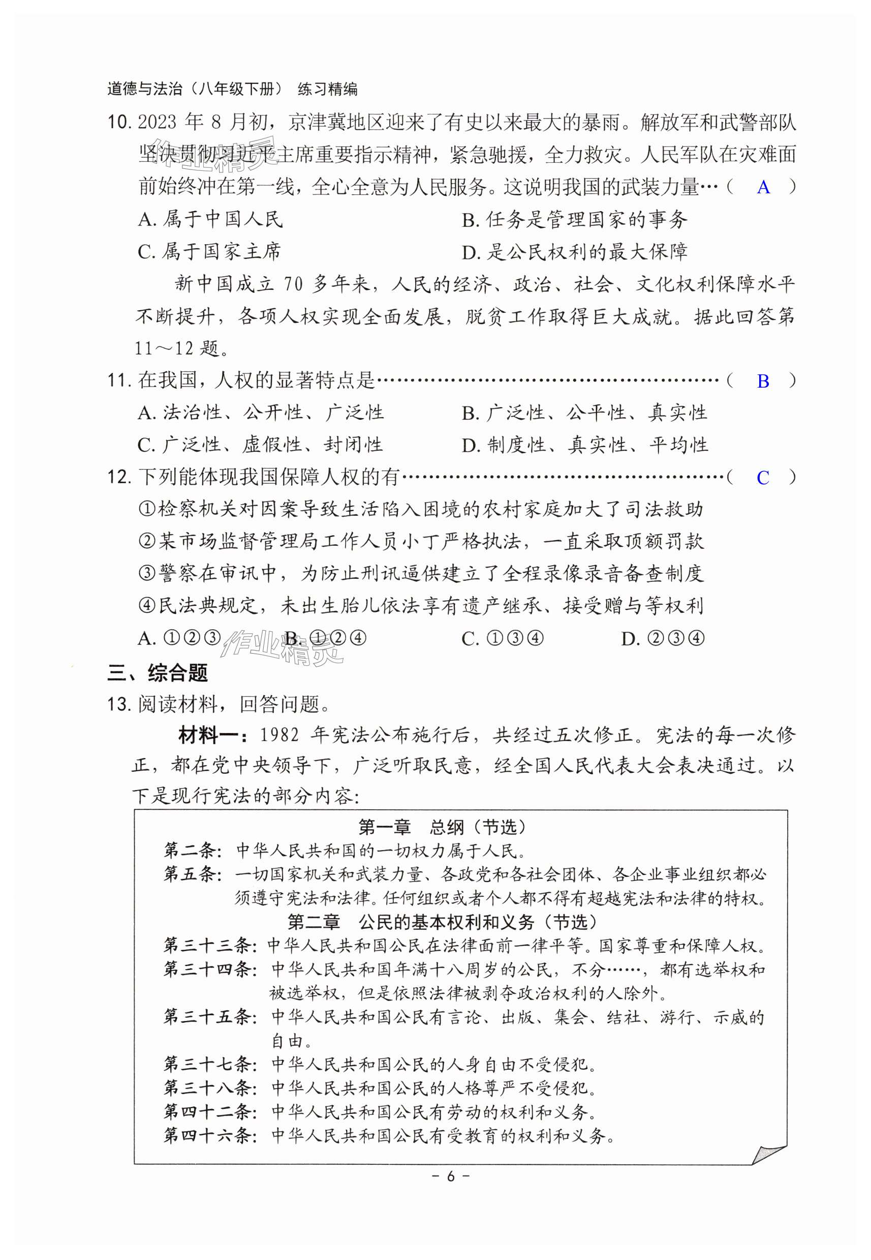 注:目前有些书本章节名称可能整理的还不是很完善,但都是按照顺序排列的,请同学们按照顺序仔细查找。练习册 2025年练习精编八年级道德与法治下册人教版 答案主要是用来给同学们做完题方便对答案用的,请勿直接抄袭。