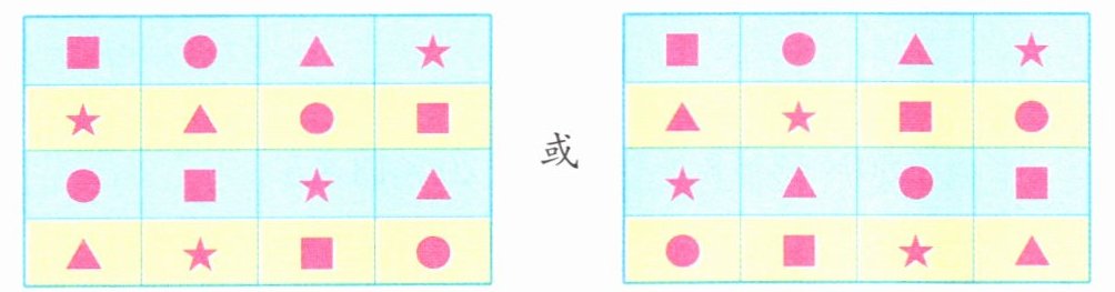 (1)在下表的空格里画上■、●、▲、★,使横行、竖行、对角线上每4个图形都不重复。