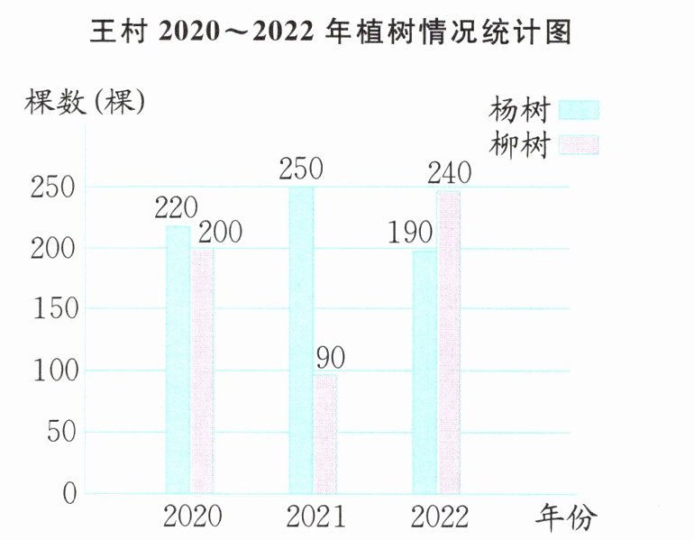 (2)2022年种植杨树的棵数是柳树棵数的几分之几?
