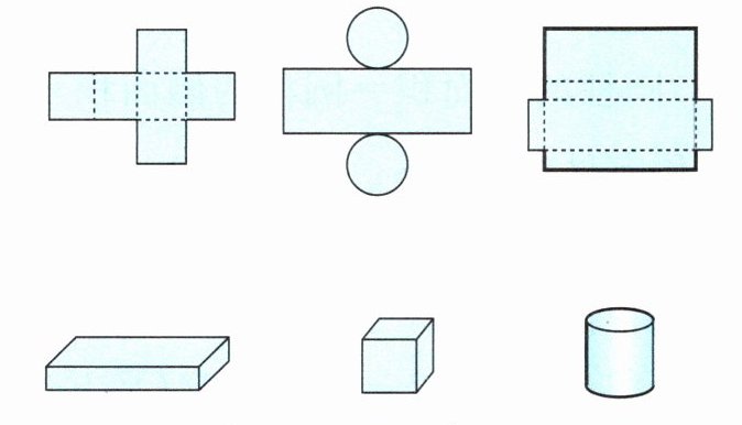 2.下面的图形是一些立体图形的展开图,请你连一连。