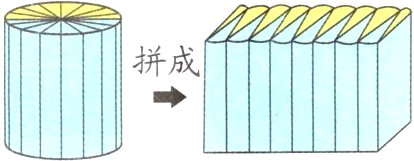 2. 如图所示,把底面周长是25.12厘米、高是15厘米的圆柱切成若干等份,拼成一个近似的长方体,这个长方体的底面积是多少平方厘米?体积是多少立方厘米?