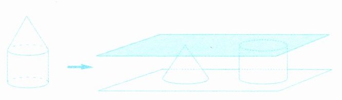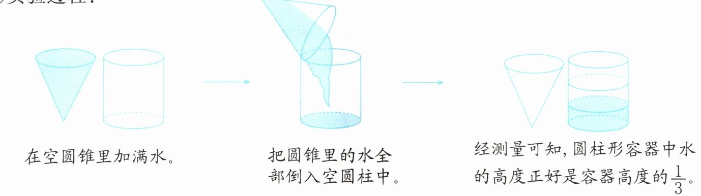 ③实验结论:圆锥的体积等于和它等底等高的圆柱体积的三分之一。