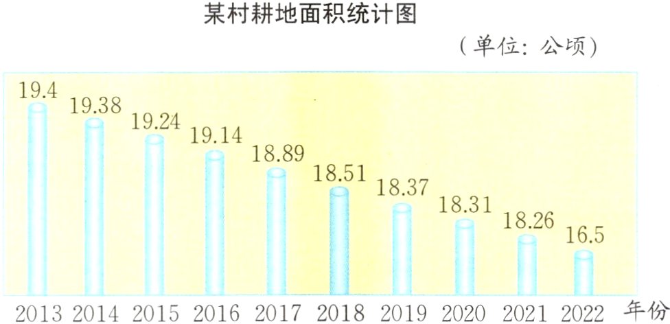 $(19.4 - 16.5)÷19.4≈14.9\% $答:$2022$年的耕地面积比$2013$年大约减少$14.9\%。$