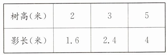 5. 下面是同一时间、同一地点测得的几棵树的树高和对应的影长。