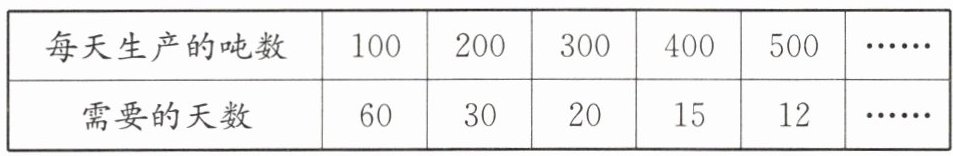 (2)观察表中数据,发现需要的天数随着每天生产的吨数的变化而变化。