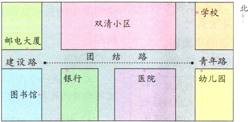 2. 团结路的实际长度是1800米,量出它的图上距离,然后求出比例尺。