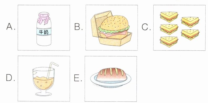 二、Amy 想制作一张饮食调查表,她询问朋友们昨天三餐所吃的食物并做了记录。单项选择。