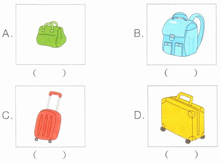 I’m Huahua. My bag is old and broken. I want a new one. Today is sunny. I go to the department store with my parents. We see many different kinds of bags. I want the blue bag. It’s big and it has got two pockets. But it is heavy. The green bag is nice. But it’s too small. So I take a yellow bag. It’s got four wheels. It’s easy for me to carry. I like it very much. I am happy.