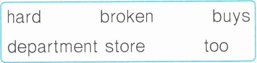 My name is Betty. I have got a black bag. It’s 1. ________. I can’t use it. I want a new one. Today is a fine day. I go to the 2. ________ with my mother. We can see a lot of things there. I want that red bag, but it’s 3. ________ heavy. It’s 4. ________ to carry. So I choose a blue one. It’s sixty yuan. It has got a big cow on it. It’s very cute. My mother 5. ________ it for me. I am so happy.