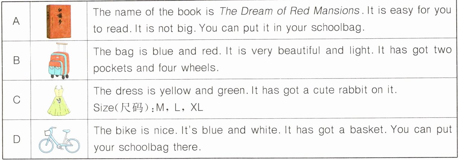 一、Lucy朋友们的生日快到了。阅读材料,帮她为朋友们选择合适的礼物吧!
