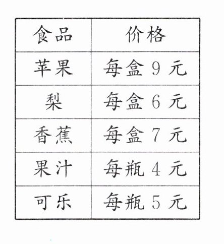 5.新情境学校为筹备联欢会,需要购买水果和饮料,表中是一些食品的购买价格。(主要对应目标:3205)