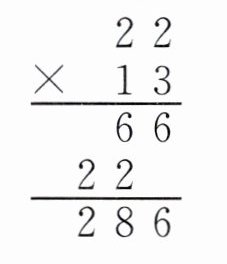 (2)如图,列竖式计算22×13时,下面算法与右图竖式计算方法一致的是( )。