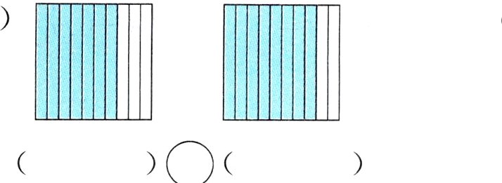 1. 根据图中涂色部分写出小数,并比较大小。(主要对应目标:3701、3703)
